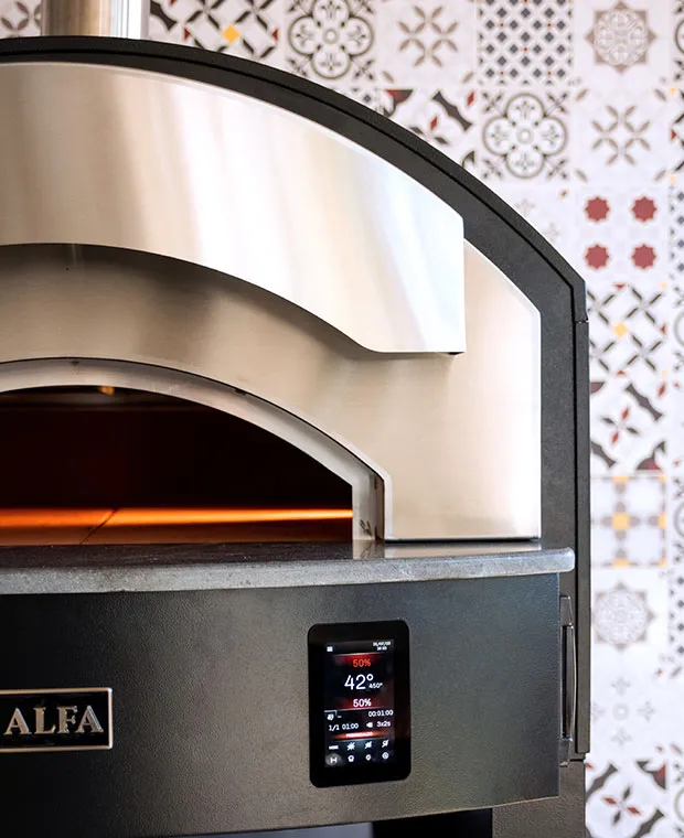 Thanks to the practical Hybrid Kit developed by the Alfa R&D team, the gas oven can be transformed into a wood-burning oven, allowing to decide from time to time which fuel to use according to the needs of the moment.