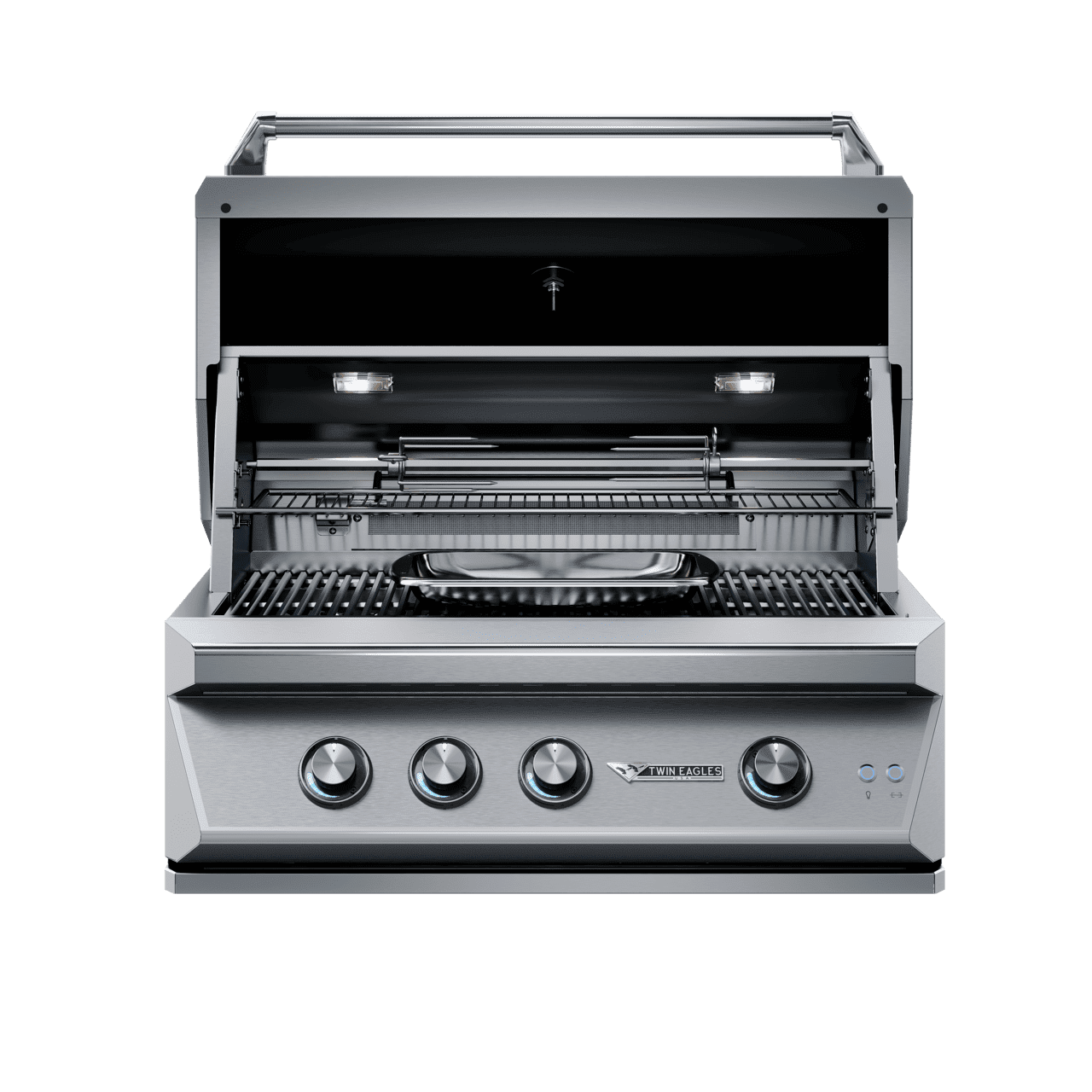 Grilling at night is simplified by the interior lights that illuminate with the hood-activated light switch