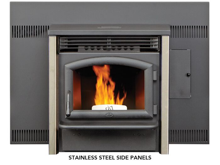 This pellet insert requires very low maintenance and comes with an easy removal ash pan. Its quick flue disconnect simplifies the little cleaning that needs to be done on the unit. The AGP’s hopper size allows for more than one bag of pellet fuel and 40-70 pounds of pellets can be loaded into it at once. Its unique horizontal rotary disk feed system (HRD) delivers all grades of pellets without jamming, overfeeding or burn backs. The AGP pellet insert is easy to operate and maintain while heating your home efficiently.