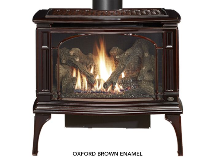 The Greenfield™ is Lopi’s largest cast iron gas stove. This powerhouse of – heater produces up to 40,000 BTUs and heats up to 2,000 square feet. The number one feature of the Greenfield is its massive, three-sided wrap around ceramic glass fire viewing area, which comes standard with 2015 ANSI-compliant invisible safety screens. Another amazing feature of the Greenfield is its downward pointing adjustable accent light which beautifully highlights the award-winning Ember-Fyre burner and interior of the stove, whether is heat is on or off.